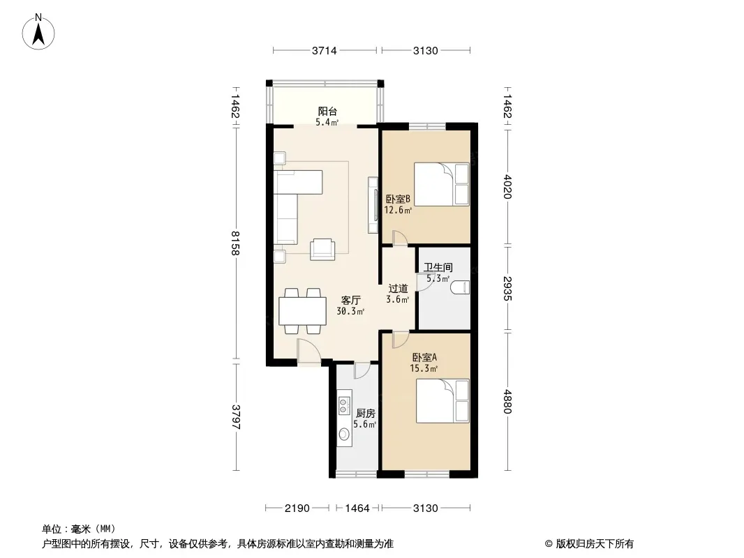 户型齐全,主打户型方正,明厨,客厅朝南,主卧朝南二居