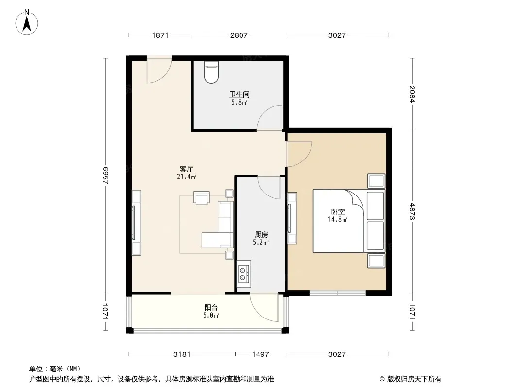 户型齐全,主打客厅朝南二居