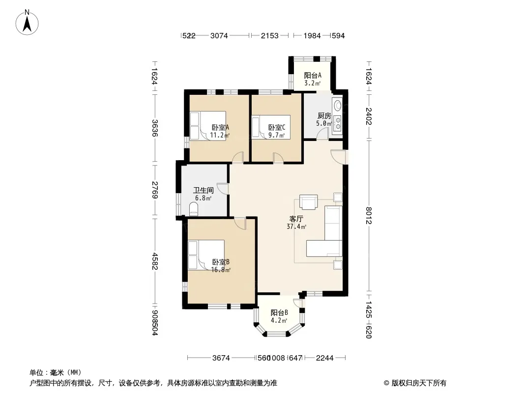 户型齐全,主打户型方正,明卫,明厨,客厅朝南,全明格局三居