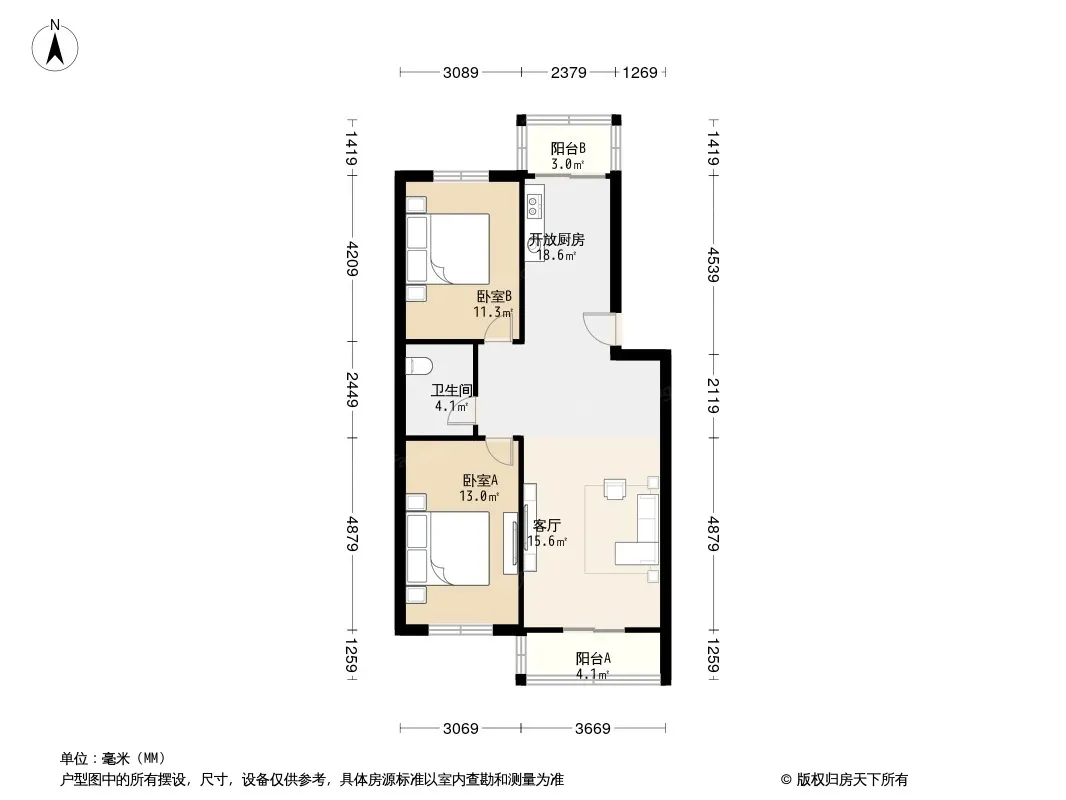 户型齐全,主打户型方正,明厨,主卧朝南二居