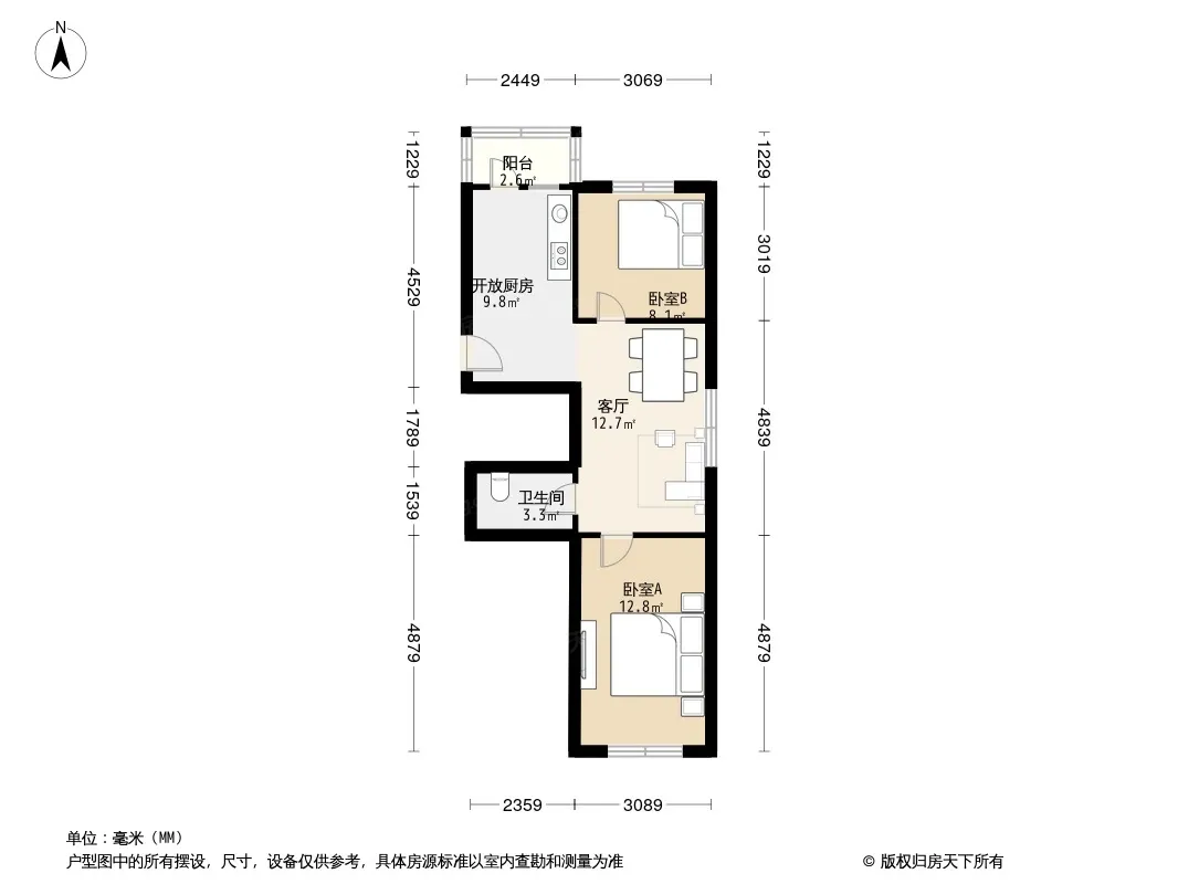 户型齐全,主打户型方正,明厨,主卧朝南二居