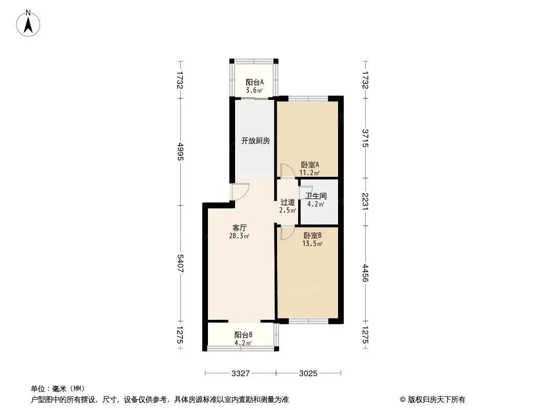 户型齐全,主打户型方正,明厨,主卧朝南二居