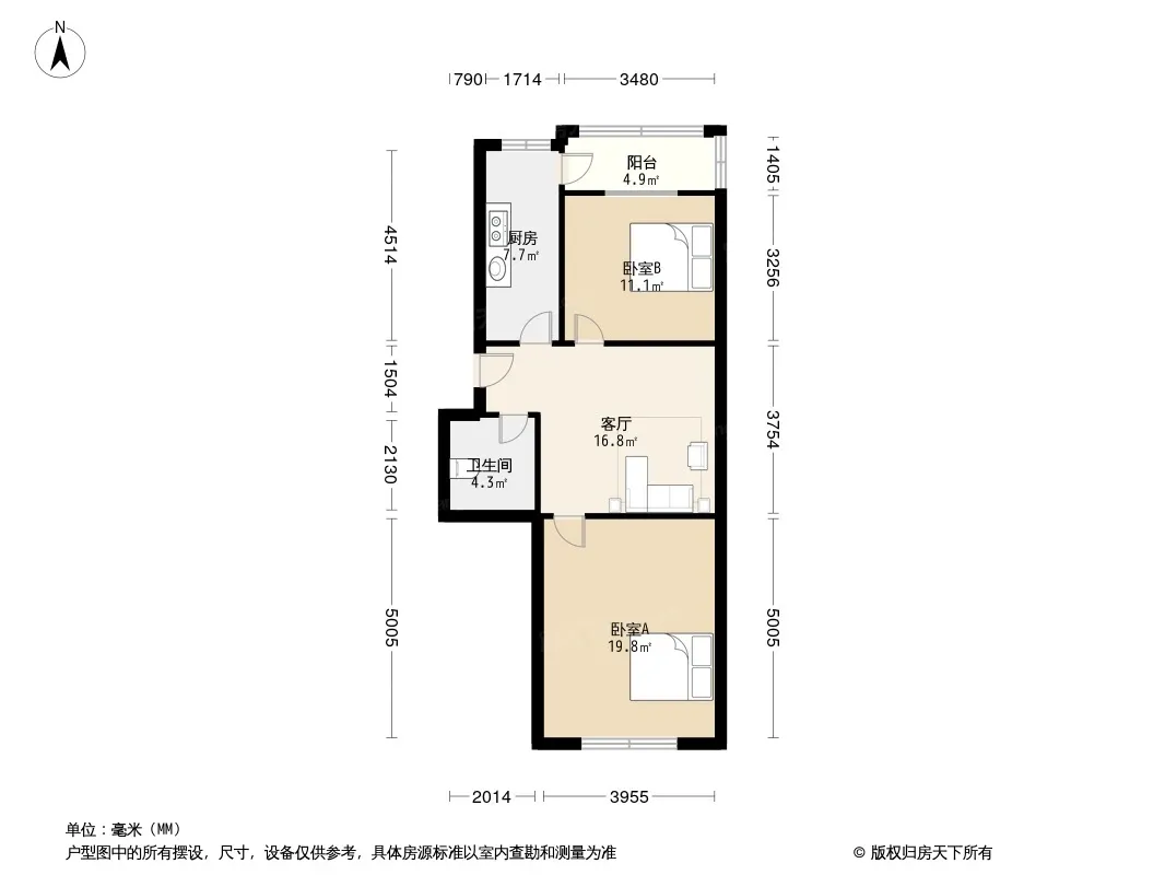 户型齐全,主打户型方正,客厅朝南,双阳台二居