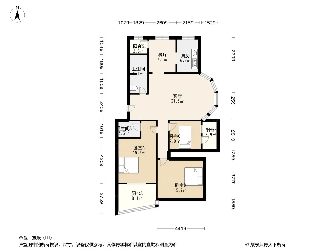 *获取完整户型报告,同时会有免费语音讲解服务