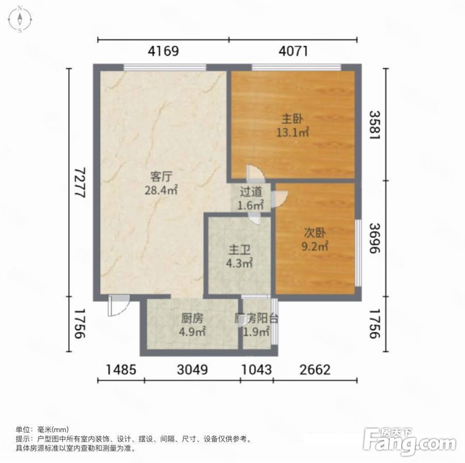 户型齐全,主打明厨,客厅朝南,主卧朝南二居
