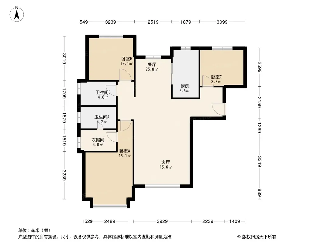 户型齐全,主打户型方正,明卫,明厨,独立衣帽间,客厅朝南,全明格局,主卧朝南三居