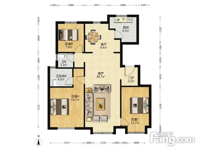 户型齐全,主打南北通透,全明格局三居
