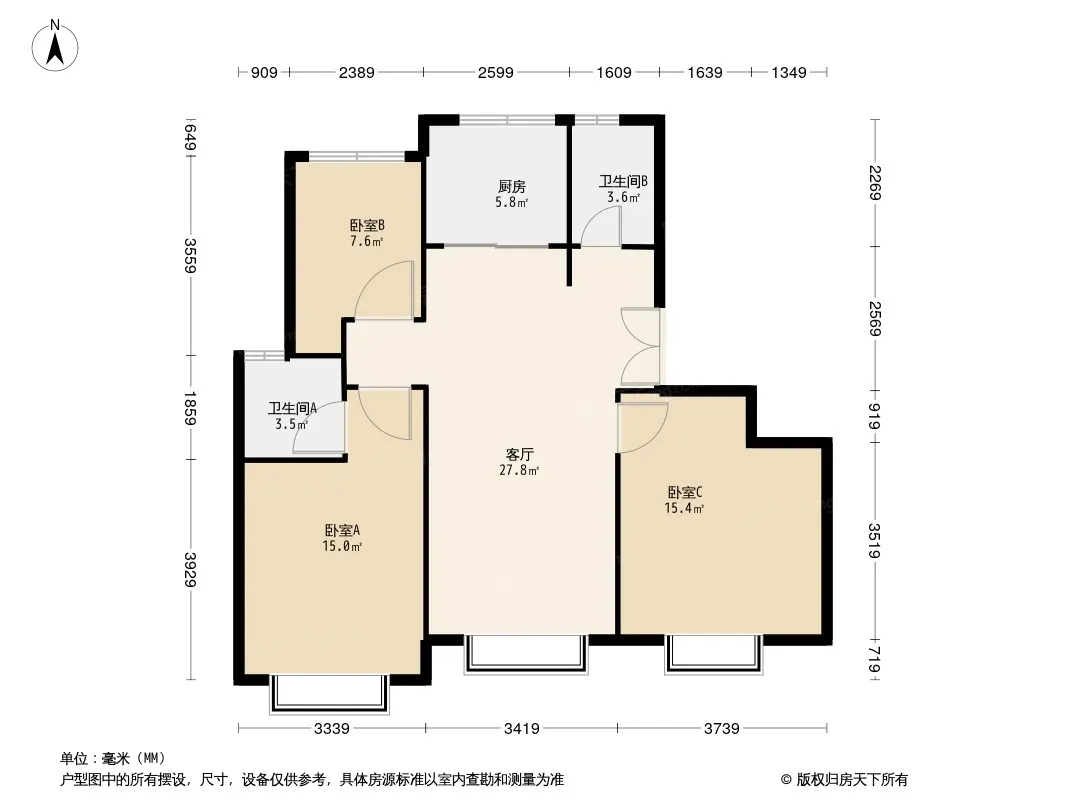 户型齐全,主打客厅朝南,卧室朝南三居