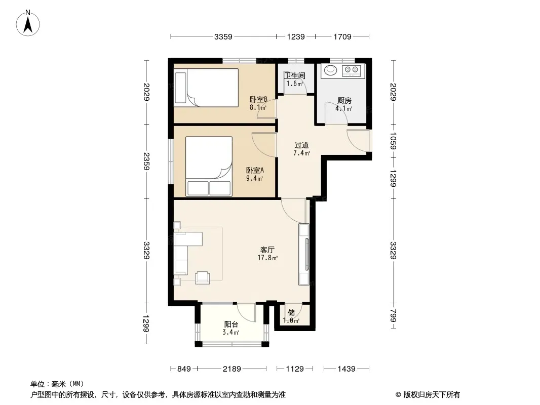 户型齐全,主打明厨,客厅朝南,主卧朝南二居