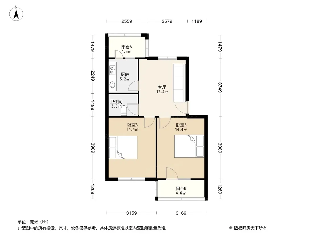 房子采光好 两卧朝阳通风好 格局合理