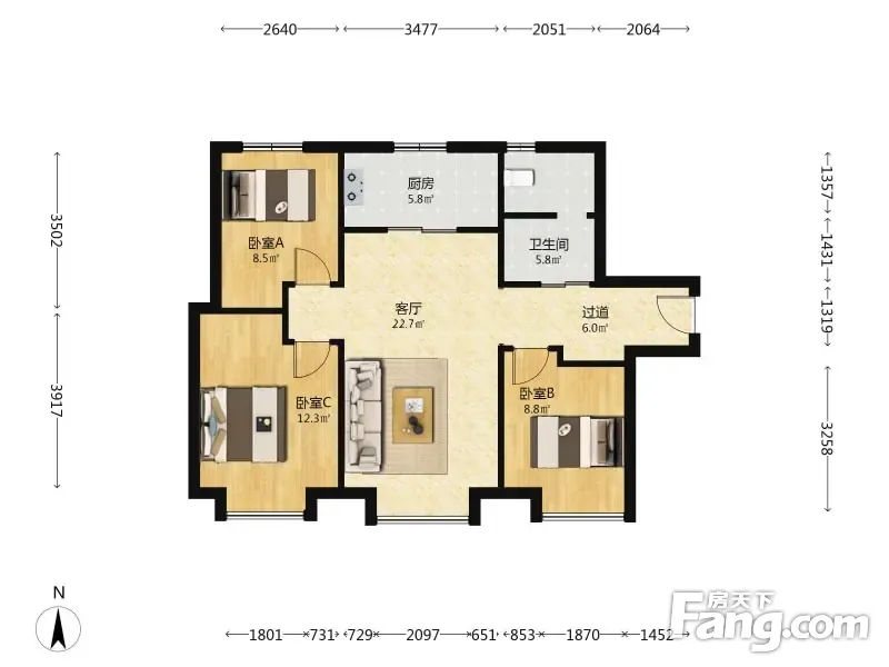 3室1厅1卫