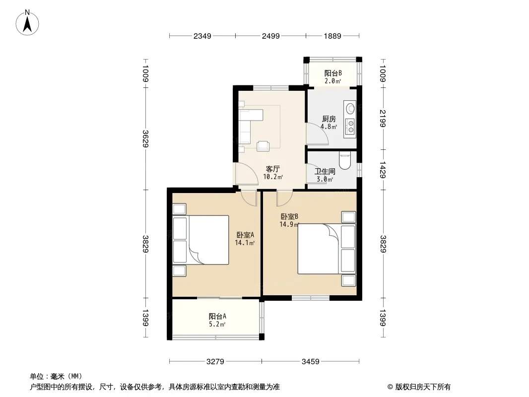 户型齐全,主打户型方正,客厅朝南,主卧朝南二居