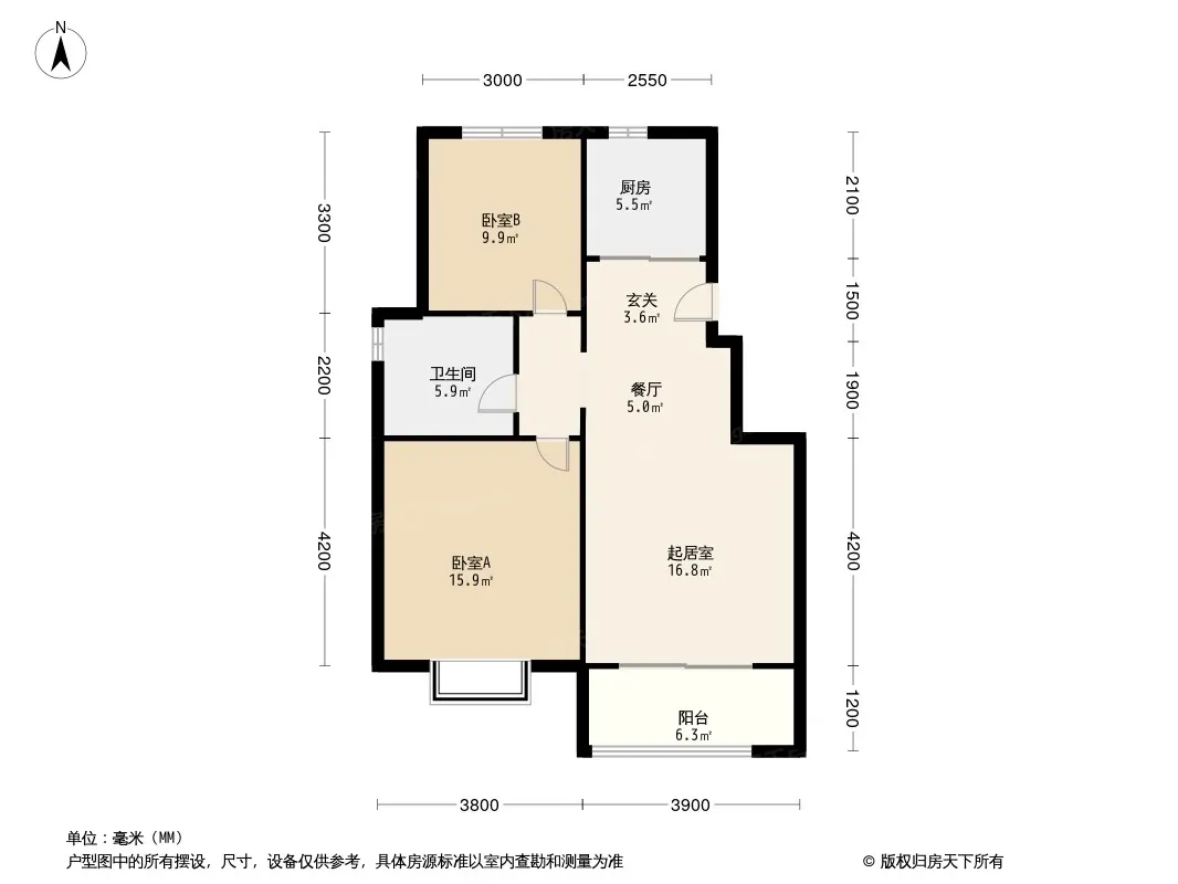 户型齐全,主打南北通透,全明格局三居