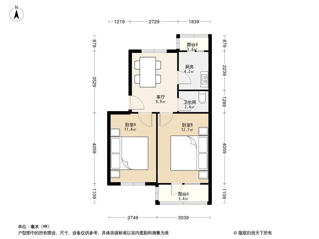 户型齐全,主打户型方正,客厅朝南,双阳台,双卧朝南,主卧朝南二居