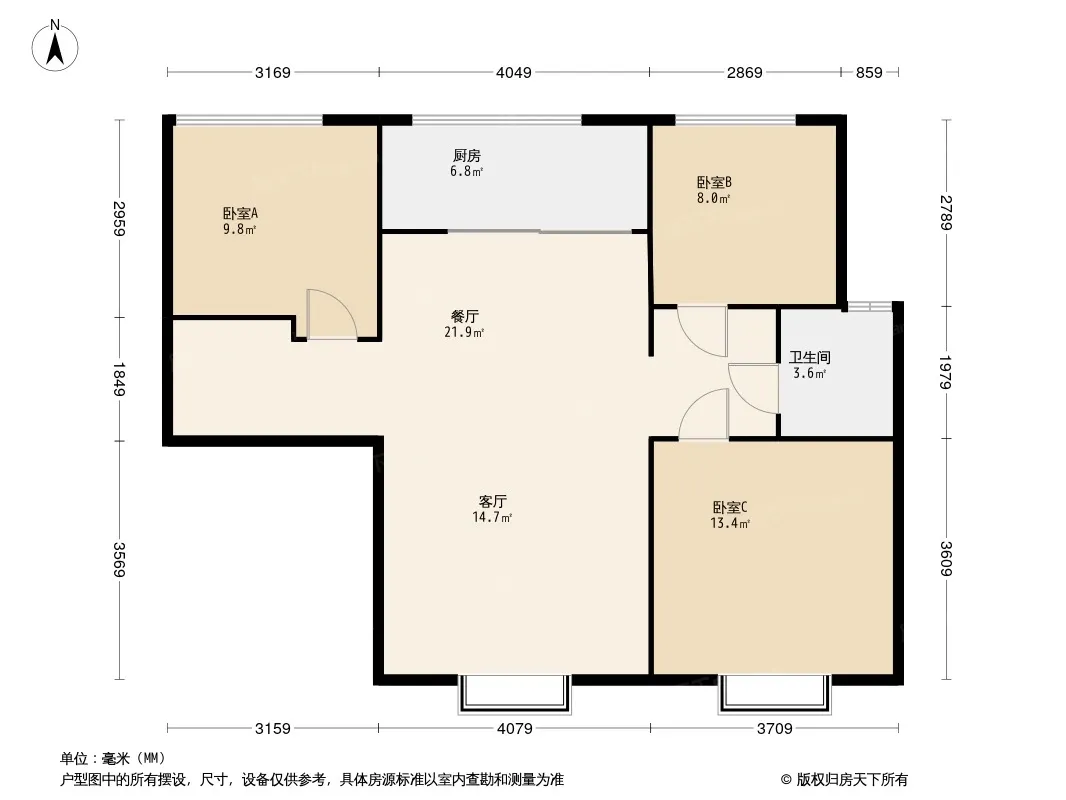 户型齐全,主打动静分离,采光充足三居