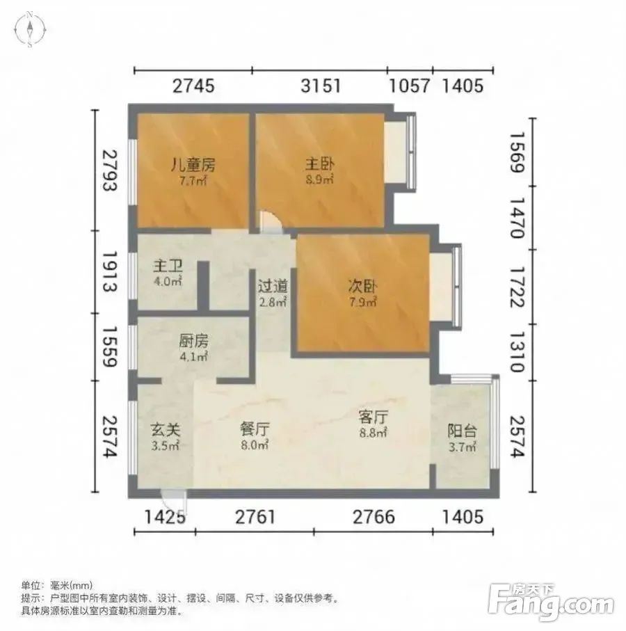户型齐全,主打南北通透,全明格局,户型方正三居