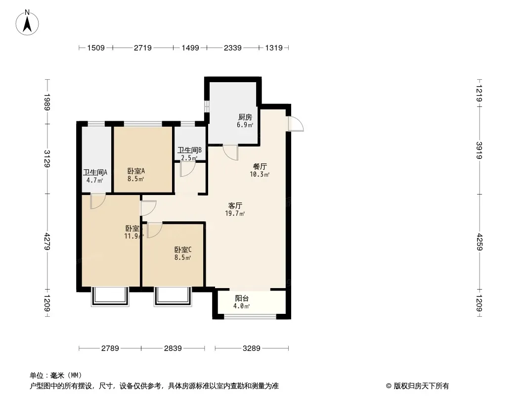 户型齐全,主打南北通透,全明格局,户型方正,客厅朝南三居