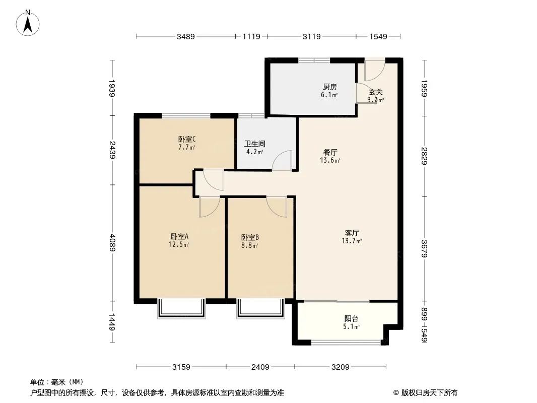 户型齐全,主打南北通透,户型方正三居