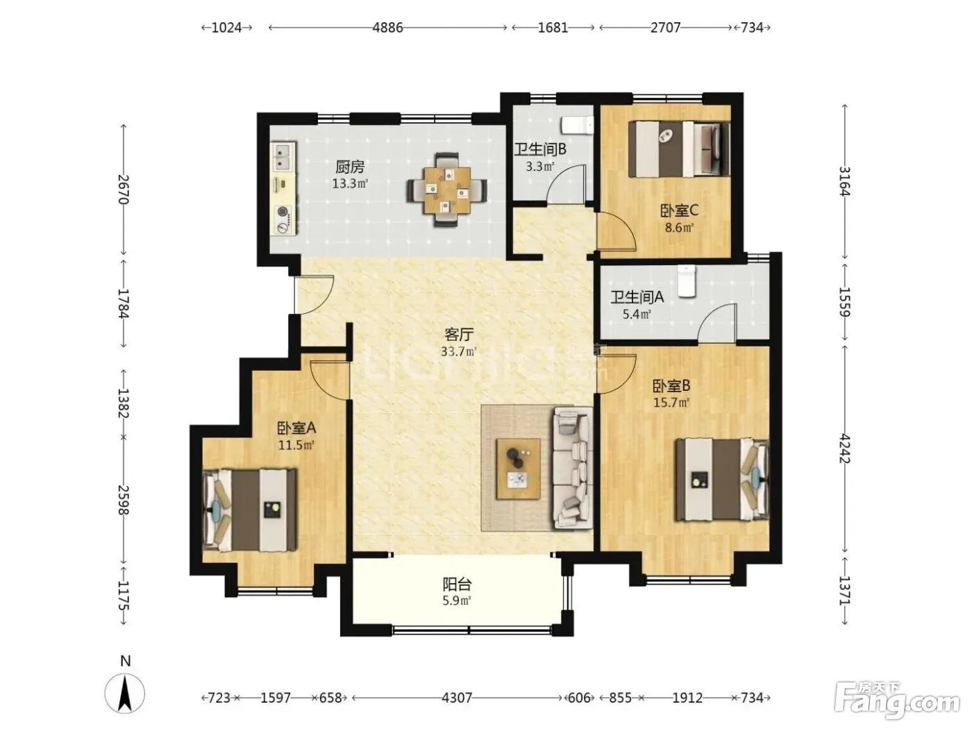新城悦隽央著 3室1厅 南 北