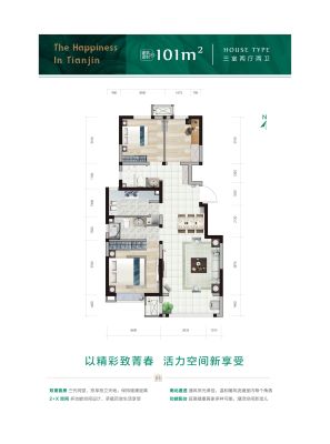 户型齐全,主打户型方正,动静分离三居
