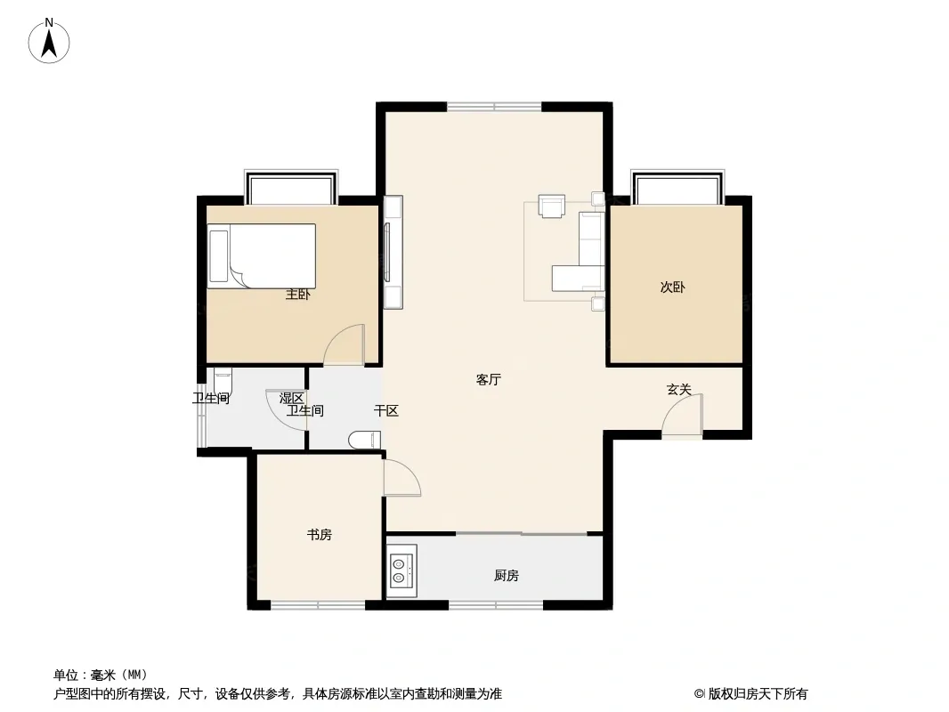户型齐全,主打南北通透,采光充足三居