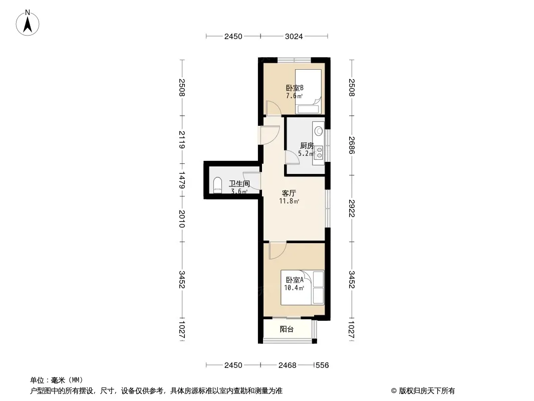 户型齐全,主打明厨,客厅朝南二居