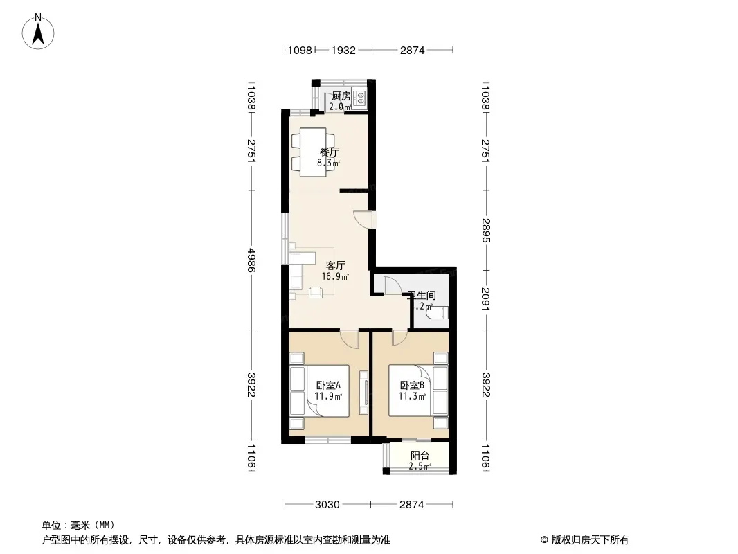 户型齐全,主打明厨,客厅朝南二居