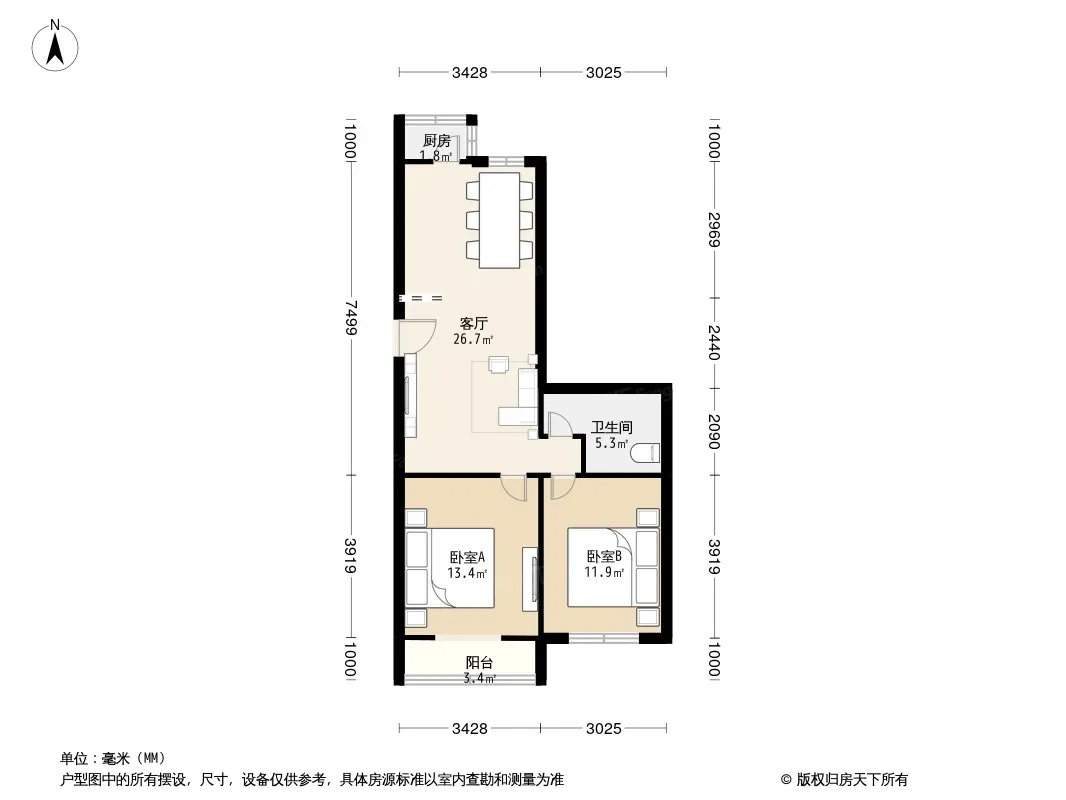 户型齐全,主打明厨,客厅朝南二居