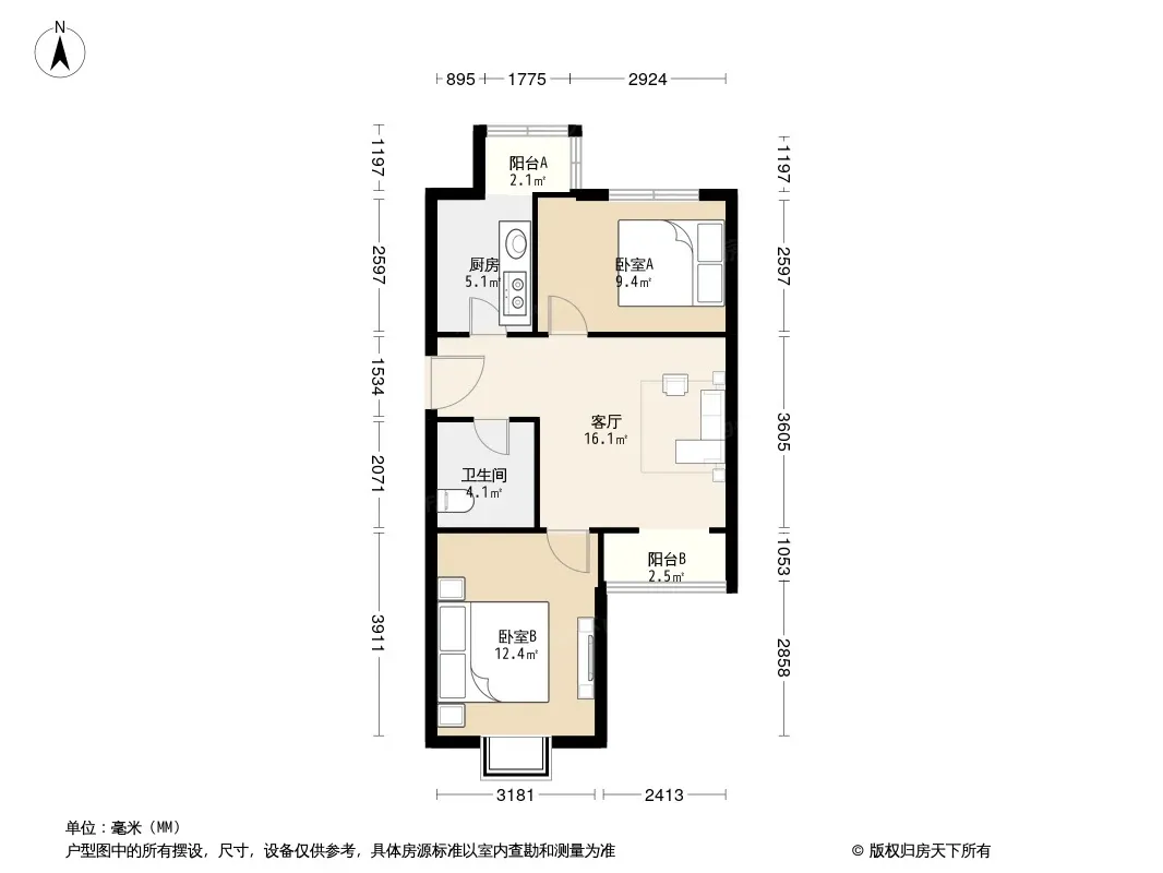 户型齐全,主打户型方正,客厅朝南,双阳台,主卧朝南二居