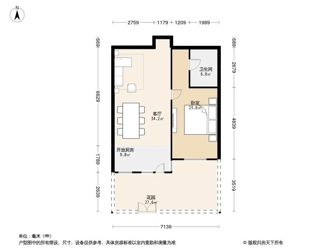 户型齐全,主打户型方正,明厨,主卧朝南一居