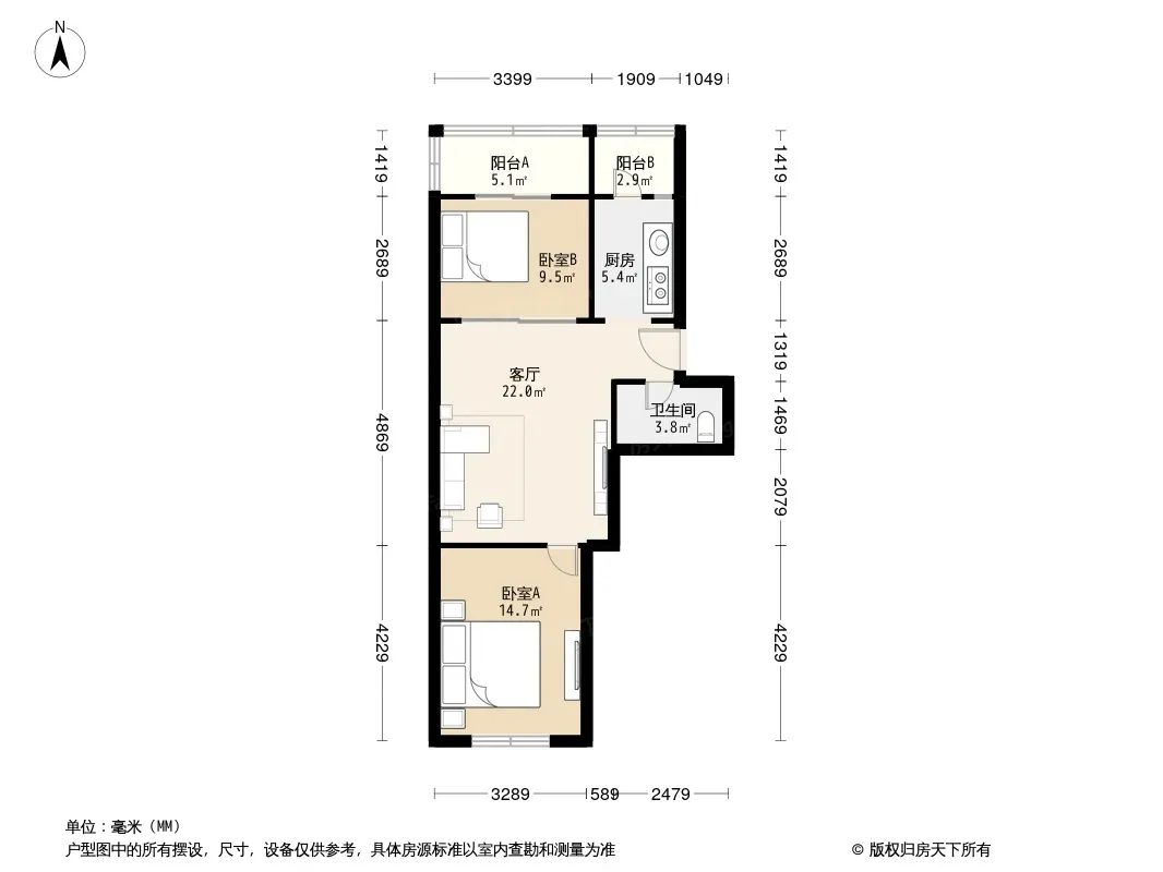 户型齐全,主打户型方正,双阳台,主卧朝南二居
