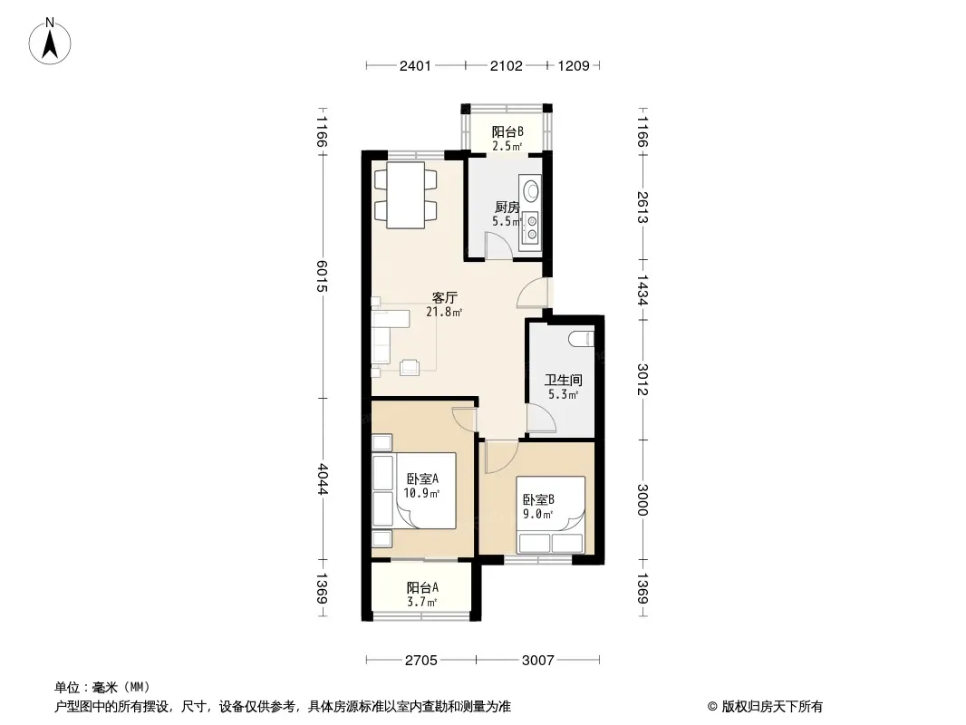 户型齐全,主打户型方正,明厨,客厅朝南,双卧朝南,主卧朝南二居