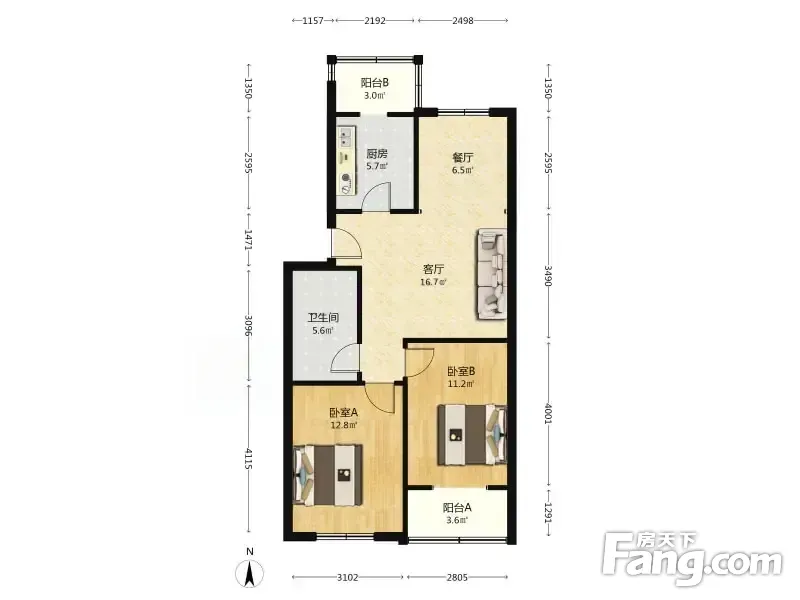 户型齐全,主打户型方正,明厨,客厅朝南,双卧朝南,主卧朝南二居