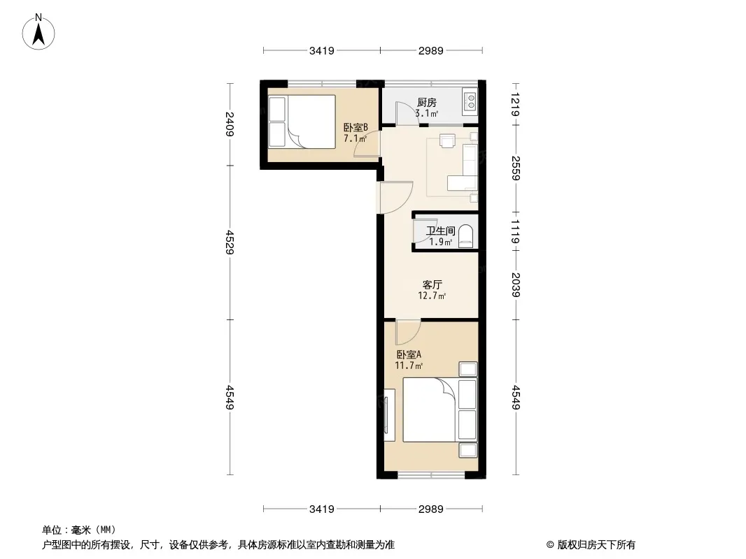 户型齐全,主打户型方正,明厨,客厅朝南,主卧朝南一居