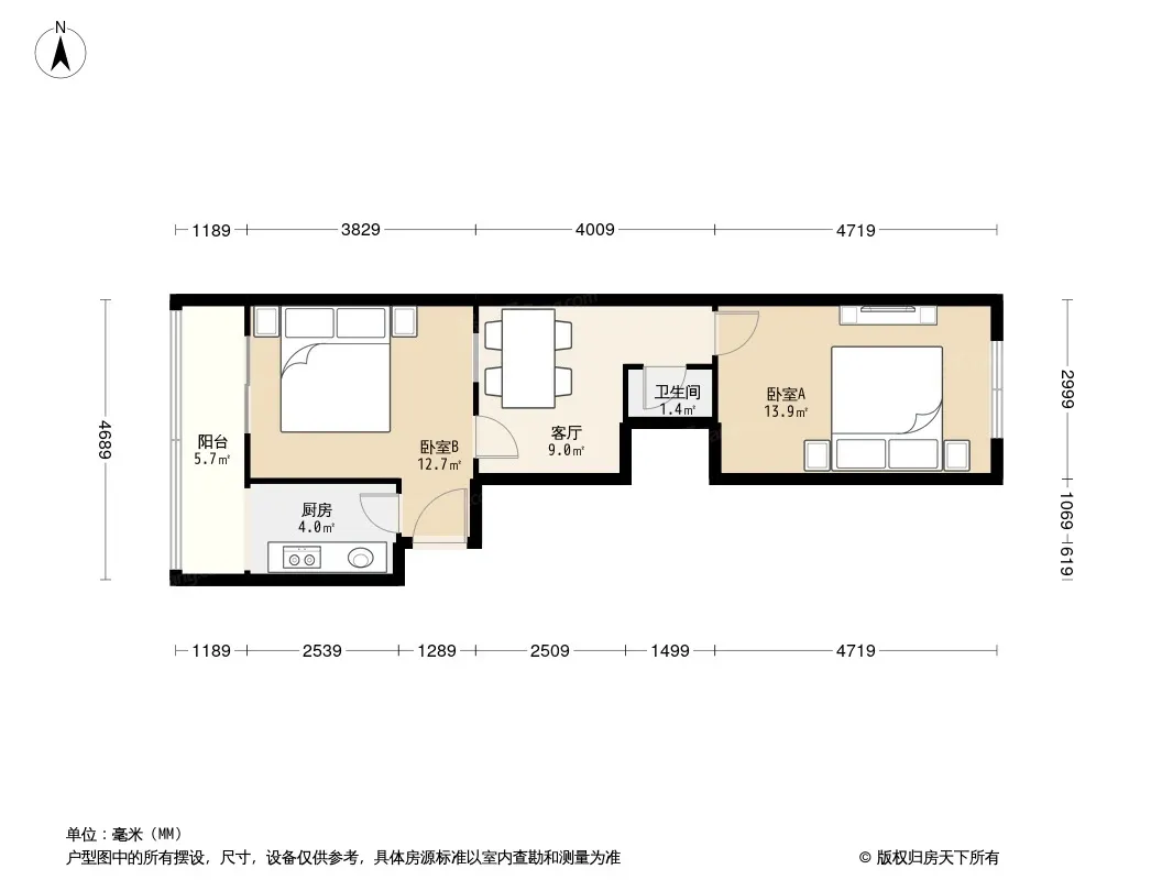 户型齐全,主打户型方正,明厨,主卧朝南二居