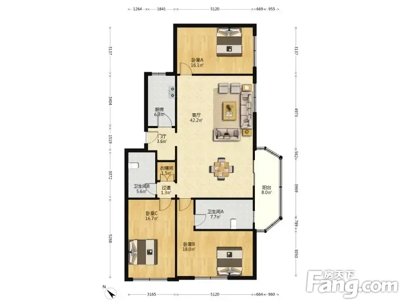 3室1厅2卫