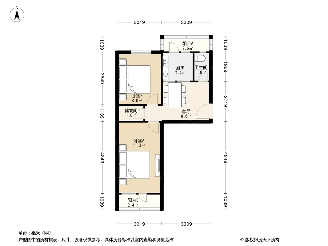户型齐全,主打客厅朝南二居