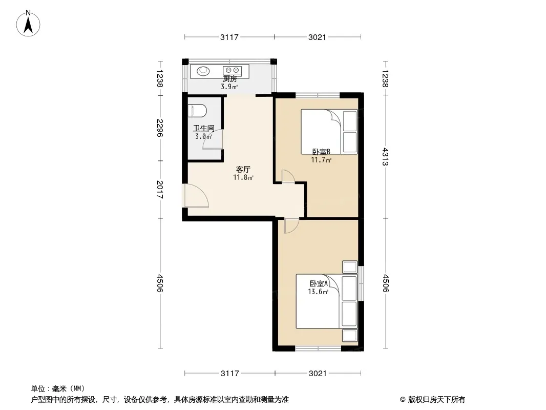 户型齐全,主打明厨,双卧朝南,主卧朝南二居