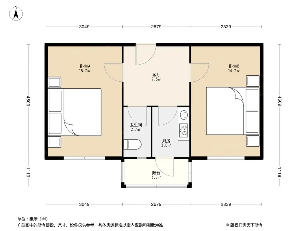 户型齐全,主打户型方正,明厨,主卧朝南二居