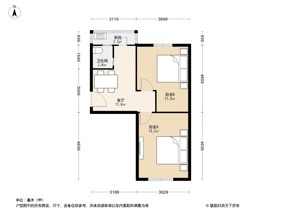 户型齐全,主打户型方正,明厨,主卧朝南二居