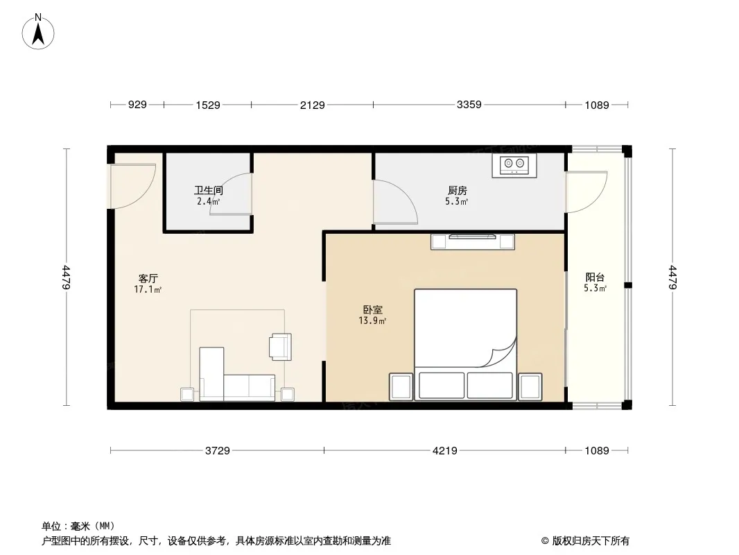 户型齐全,主打户型方正,明厨,主卧朝南一居