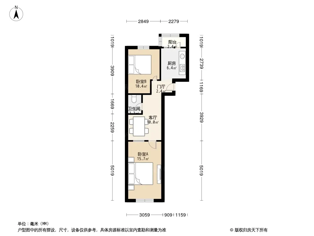 宇轩里,南北通透2室,全明户型,采光好。