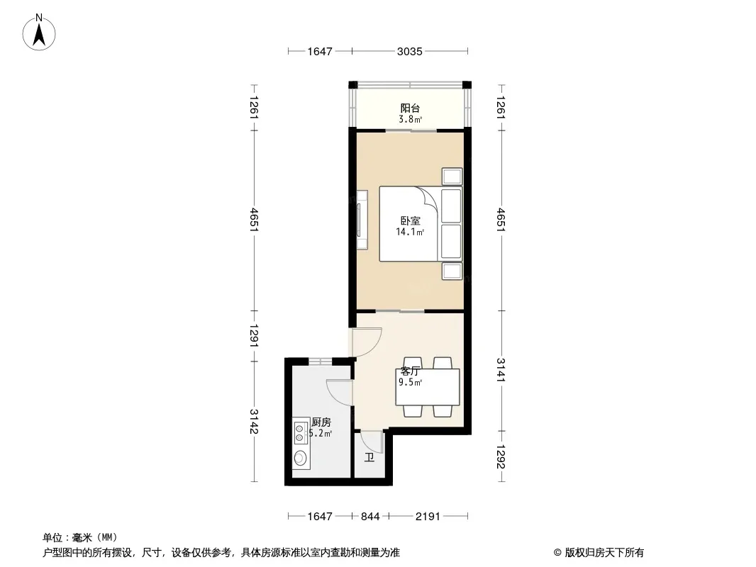 户型齐全,主打明厨,客厅朝南一居