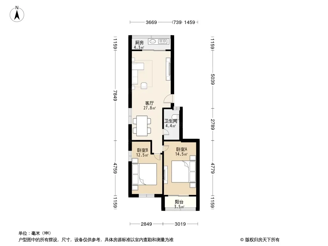 户型齐全,主打户型方正二居