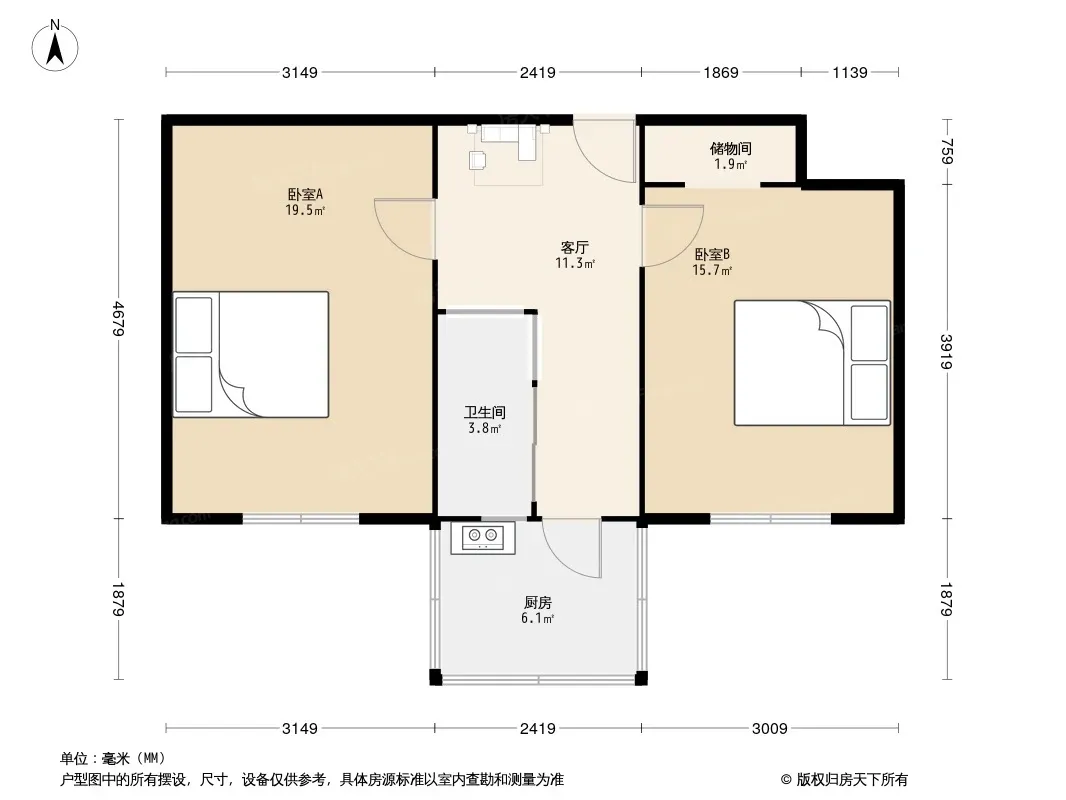 户型齐全,主打双卧朝南二居