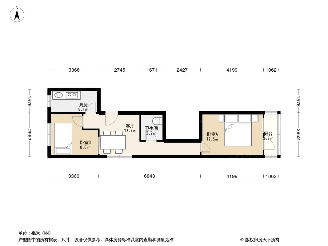 户型齐全,主打明厨,主卧朝南二居