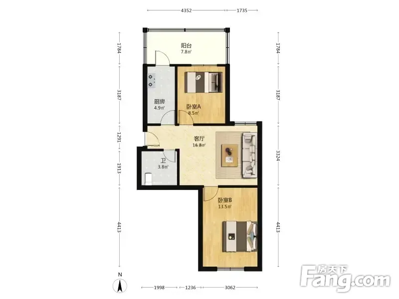 户型齐全,主打双阳台,双卧朝南,主卧朝南二居