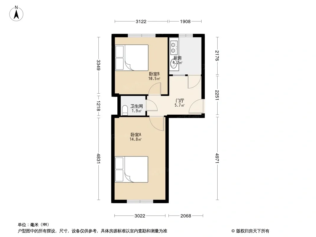 户型齐全,主打明厨,双卧朝南,主卧朝南二居