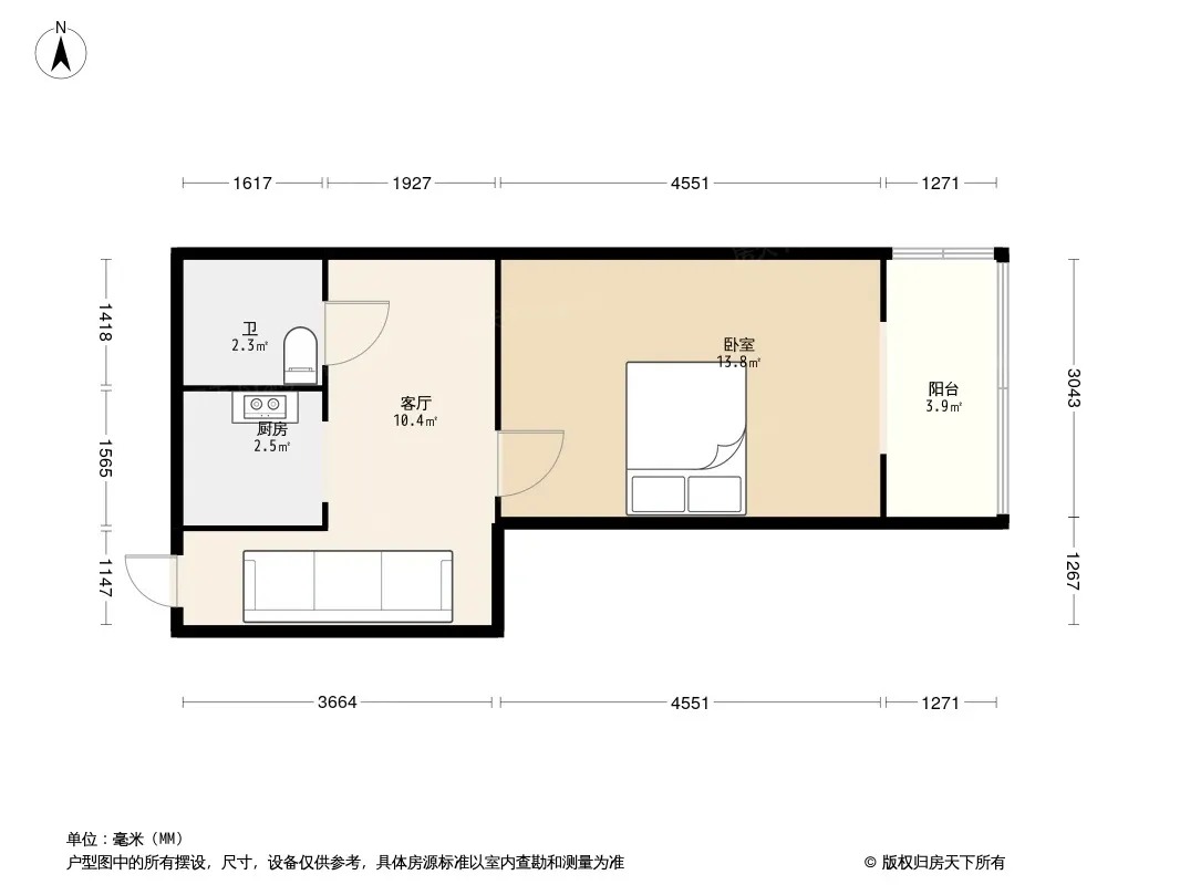 户型齐全,主打明厨,明卫,主卧朝南一居