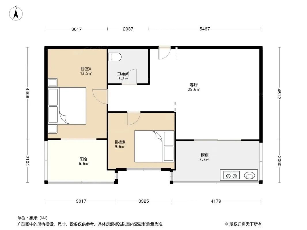 户型齐全,主打明厨,双阳台,主卧朝南二居